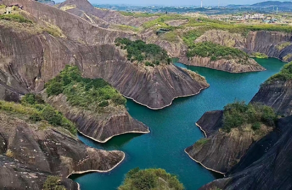 红岩如浪、绿水如带